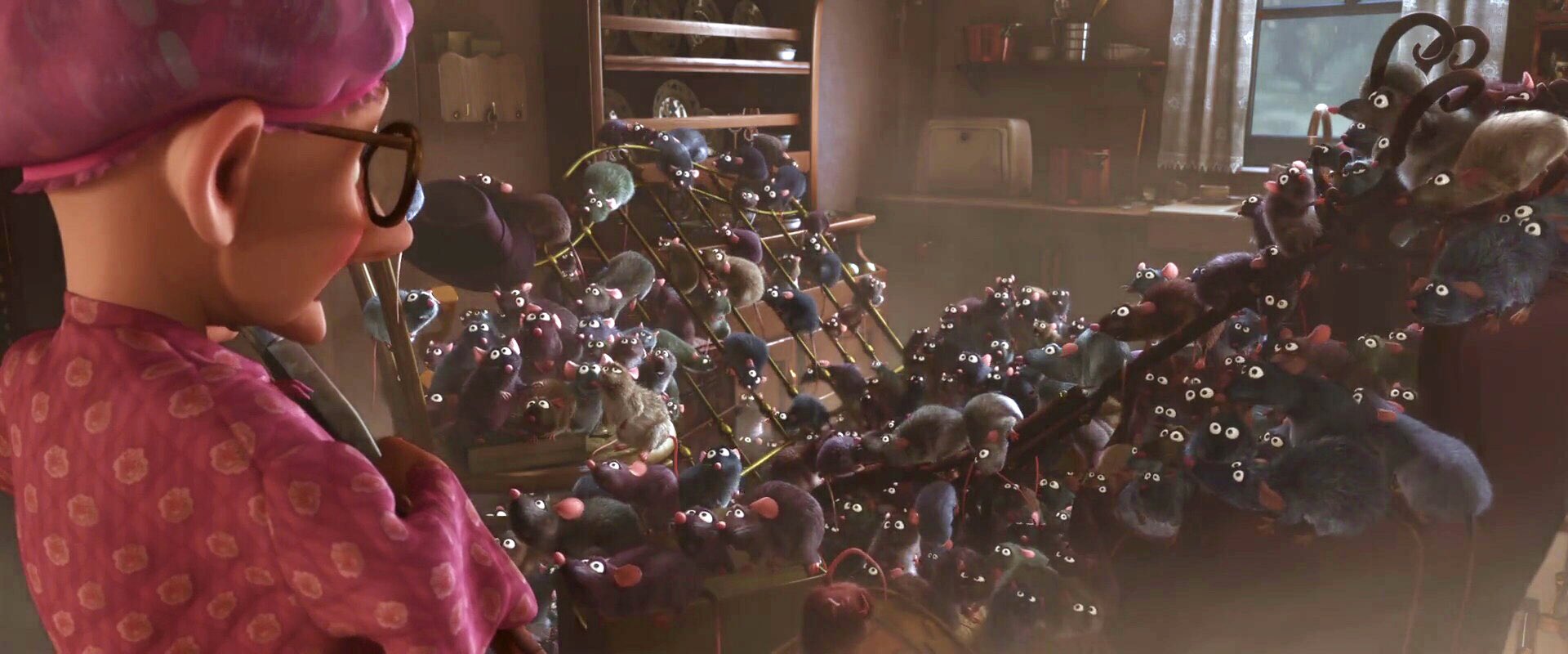 I don’t know where my fear of rats came from or when it started. But I do remember very vividly being traumatized by the sight of rats in cartoons as a child. Two times in particular; the rat in Disney’s Lady and the Tramp (1955), which I have never watched again, and the rats in Ratatouille (2007), who ironically enough were protagonists fighting against human prejudices against rats. However, as a child, I recall being completely terrorized watching Ratatouille when it came out in 2007. Specifically the beginning scene, with the collapsing ceiling with all the rats and the grandma.