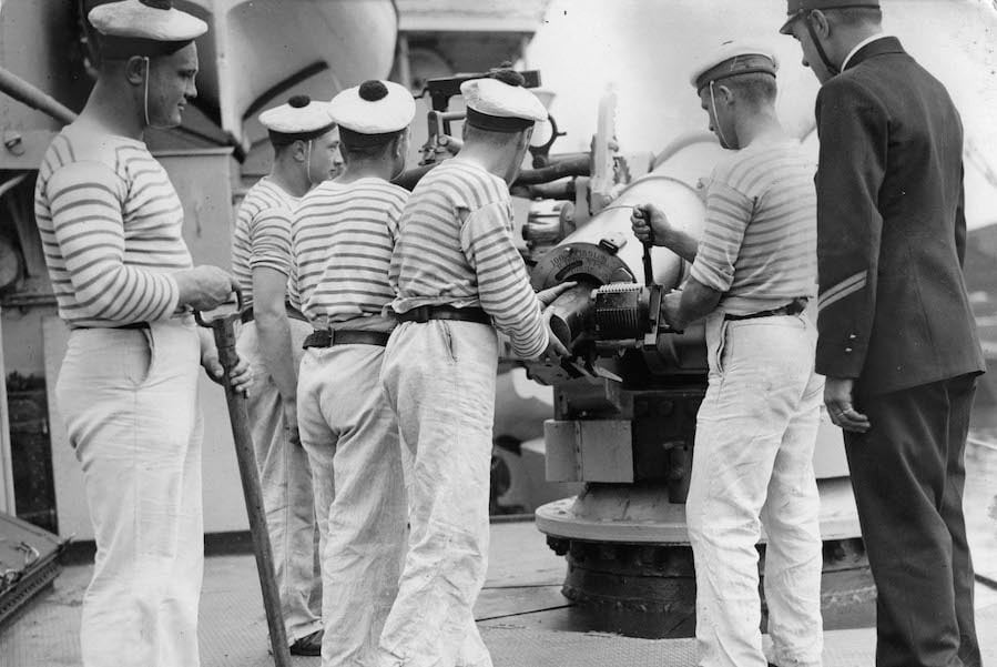 Fig 6. Training of officers and cadets of a french ship on the River Thames, London, England 1935. Photo by Getty