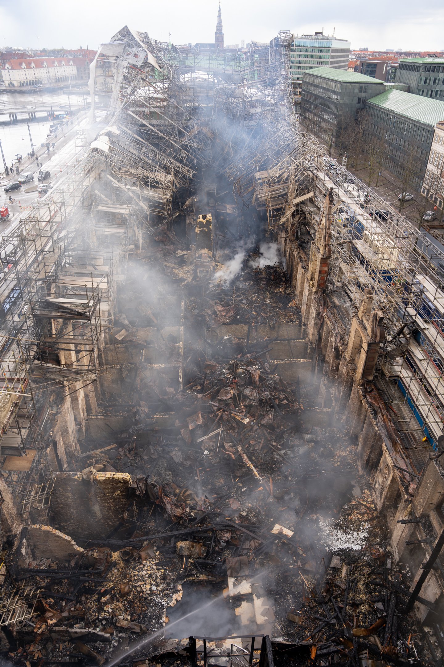 Brian Mikkelsen, CEO of the Danish Chamber of Commerce, echoed the nation’s grief: “We have lost our cultural heritage. It’s a huge disaster. It’s one of the most important buildings in Denmark and we were in the middle of restoring it, so that it could shine, to show what it has meant for Danish business for 400 years.” BT, “Brian Mikkelsen Knust Over Børsen Brand: ‘Det Er En National Katastrofe,’” accessed February 23, 2025 https://www.bt.dk/samfund/brian-mikkelsen-knust-over-boersen-brand-det-er-en-national-katastrofe