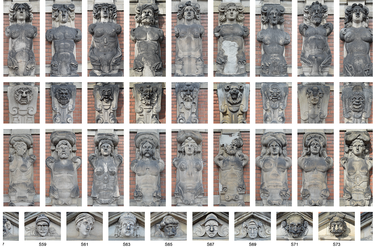 The building’s façade, composed of brick and enriched enriched with intri- cately sculpted sandstone, holds both historical and aesthetic value. The decorative elements—including caryatids, herms and expressive sculpted faces—are central to Børsen’s Renaissance character, each figure showcasing a unique expression and masterful craftsmanship. Leif Hansen Arkitekter. Facaderenovering. Accessed March 20, 2025 ->